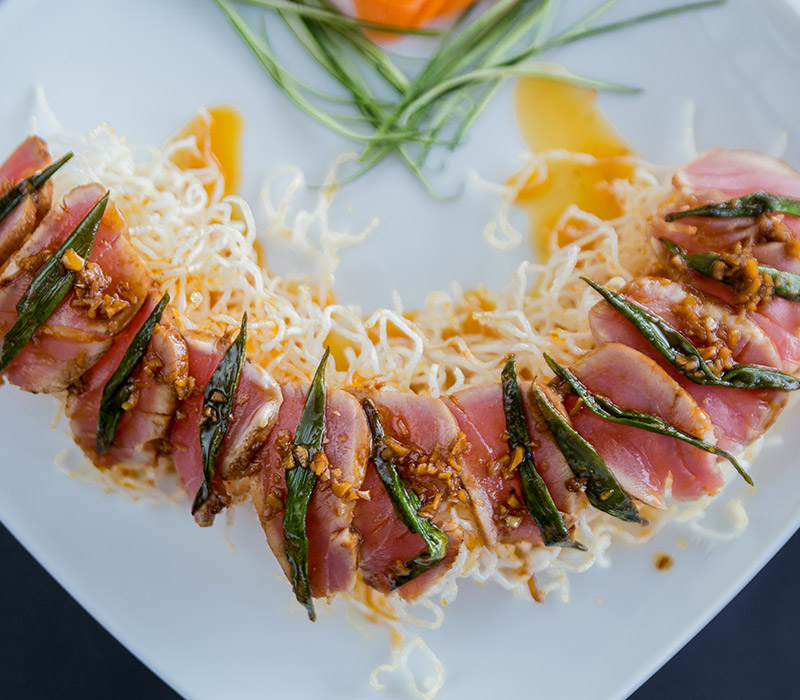 Atún sellado en salsa de cítricos.