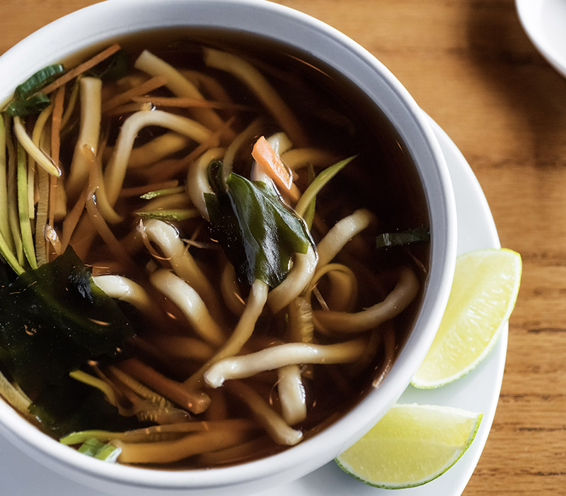 Udon con vegetales.